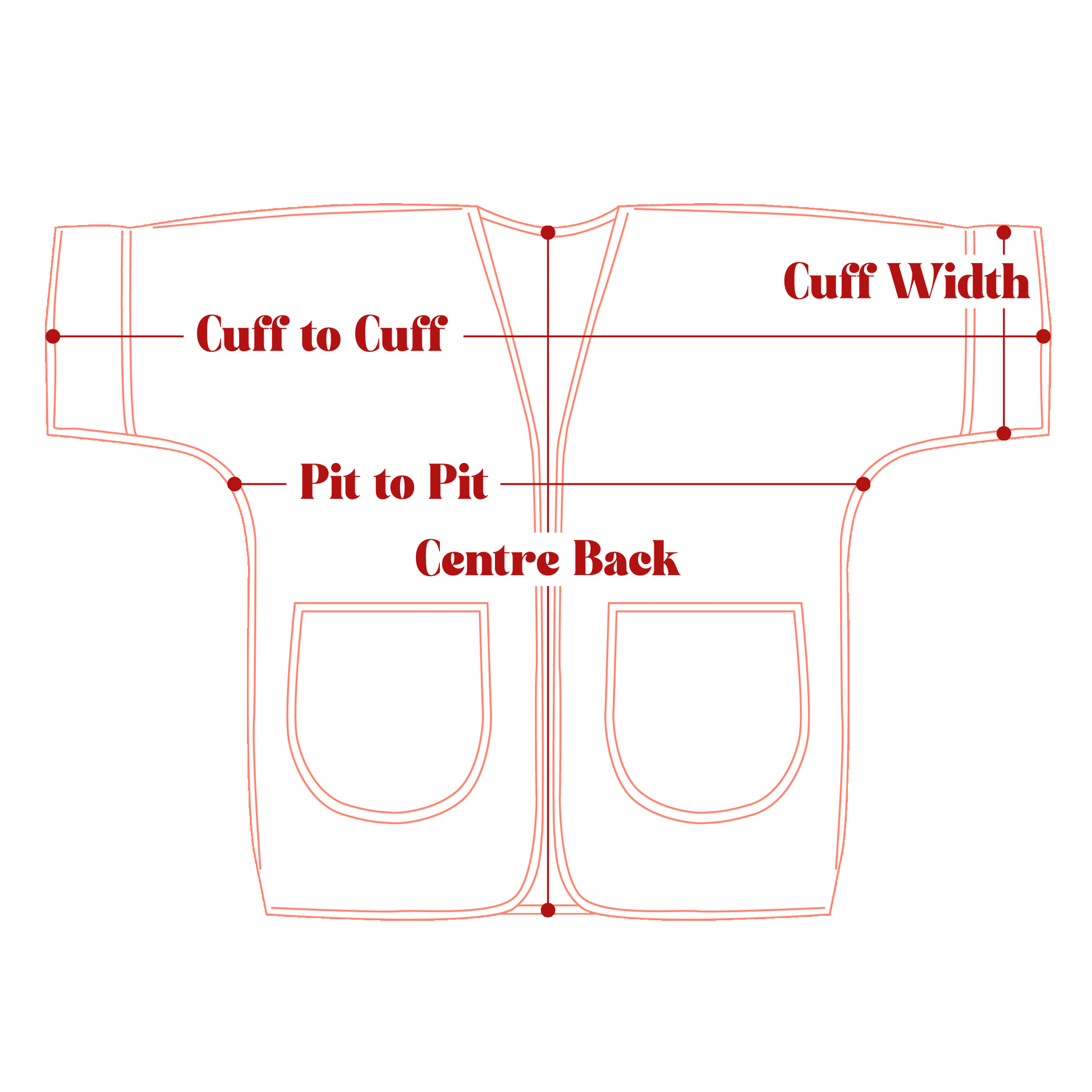 All measurements are approximate and our jackets are machine washed after construction for extra quiltiness. This makes them look worn, but it allows us to triple check the quality. Measurements may vary due to various shrinkage rates during the washing process. Measured while laying flat.