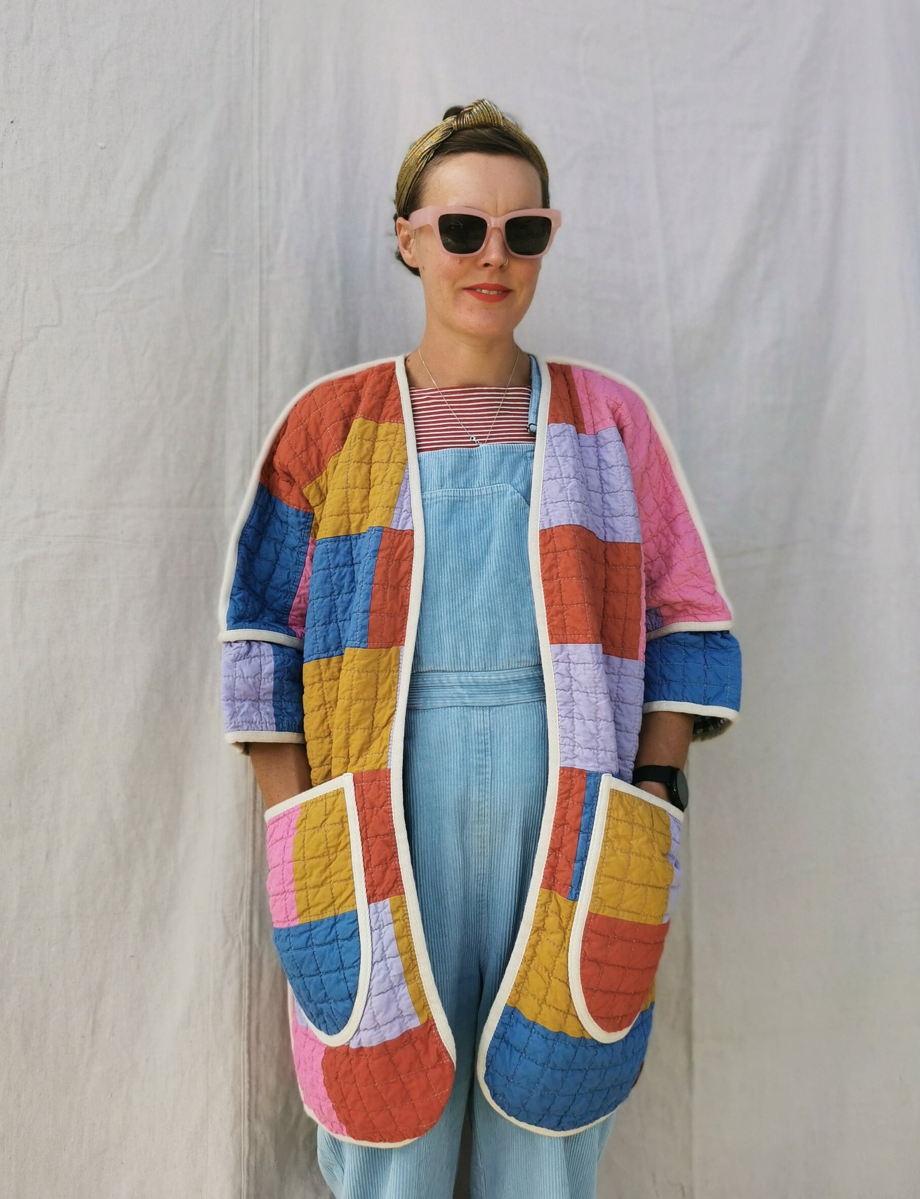 Bold prints pieced together to make this epic quilt coat with big pockets!